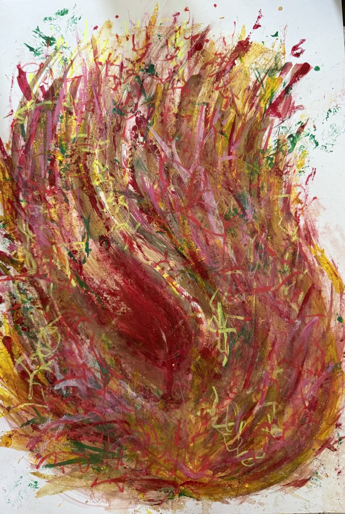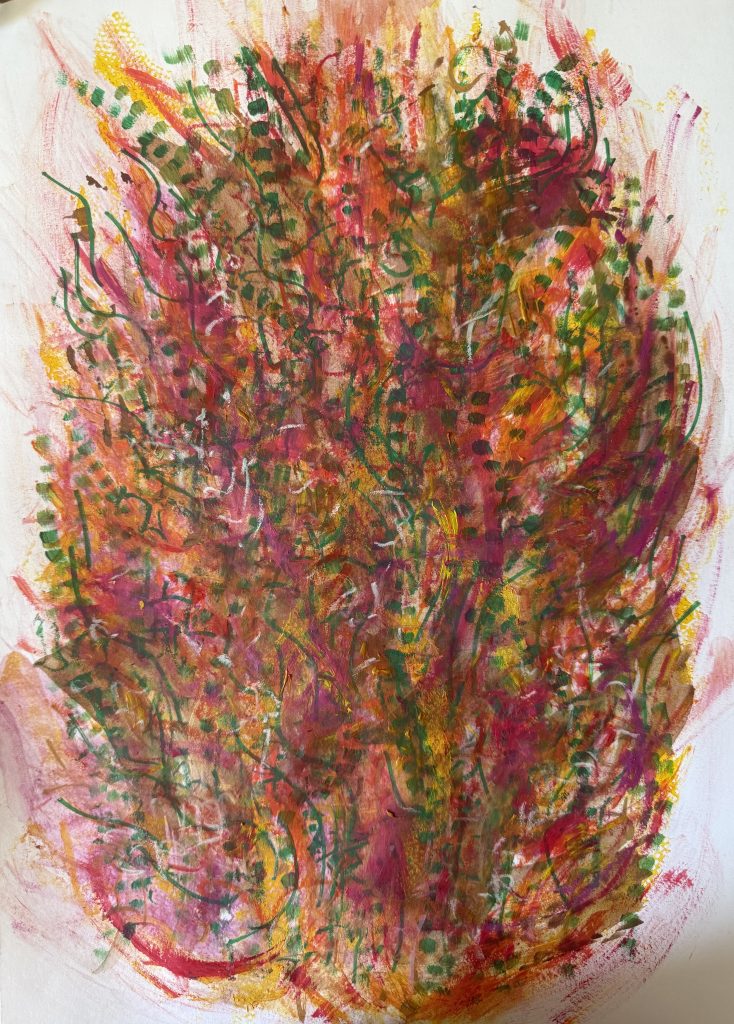 Le soin commence alors. Je me connecte à ton champ énergétique via le chakra du cœur et je canalise les codes de lumière adaptés à tes besoins. Ces codes s’expriment en langage de lumière à travers des chants vibratoires, de l’écriture intuitive codée et des peintures vibratoires